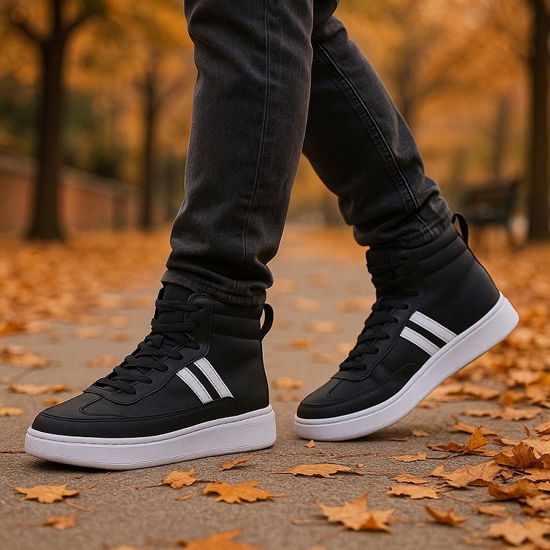نیم بوت مردانه مشکی خطی سفید مدلMiler