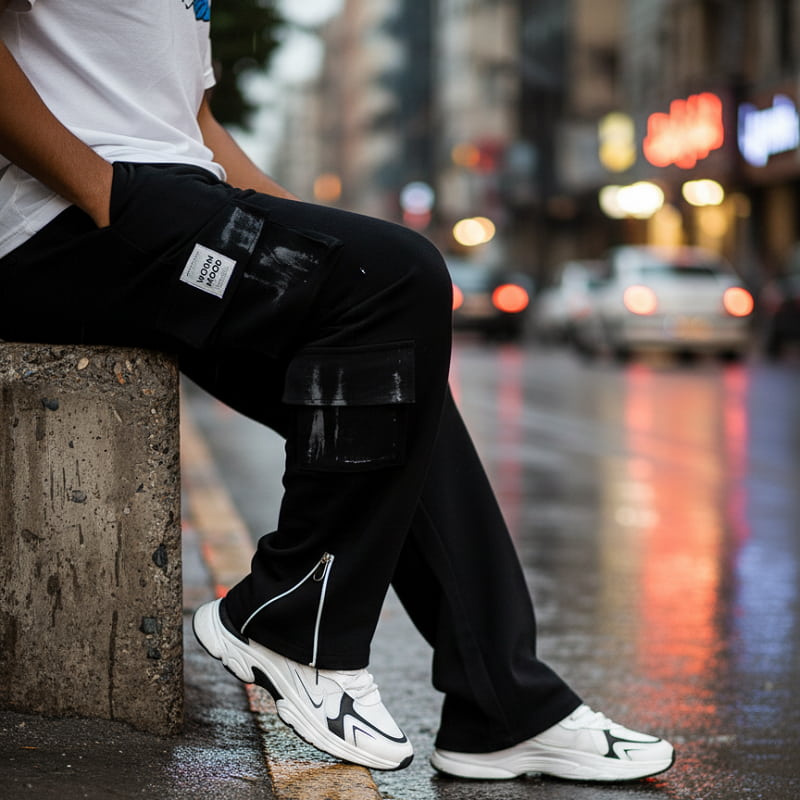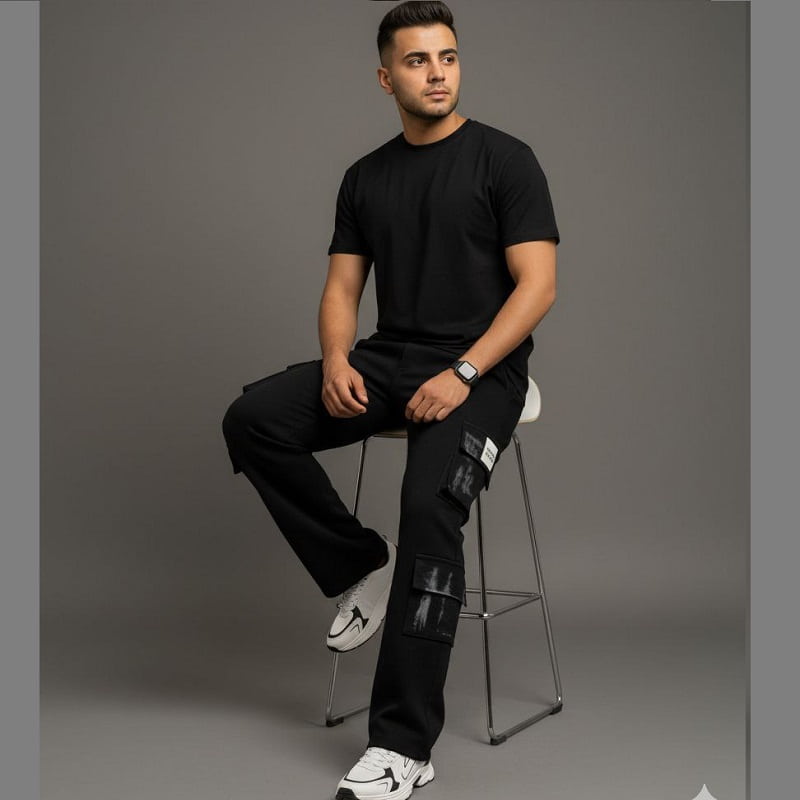 شلوار کارگو شش جیب پایین زیپ مدل sami-مشکی