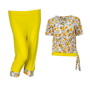 ست تیشرت شلوارک زنانه گل دار زرد مدل ADELA